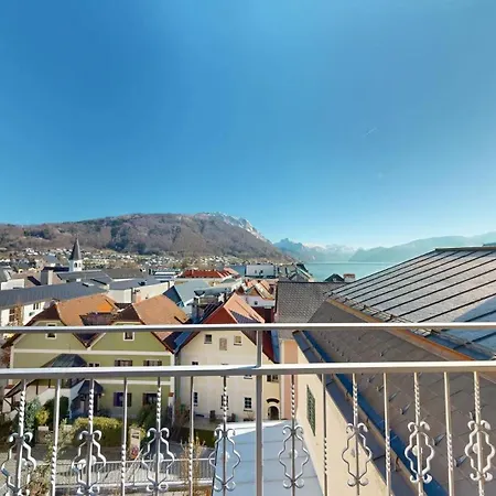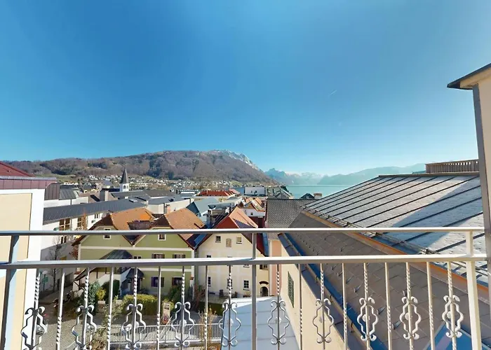 Het appartement beschikt over een balkon en een zitruimte, biedt airconditioning aan, en kijkt uit over het meer. Gasten die verblijven in Marktplatz Traunsee LAKE View appartement kunnen genieten van het gemak van een haardroger en badlakens in de badkamer. Daarnaast vindt u er een apart toilet en een douche.